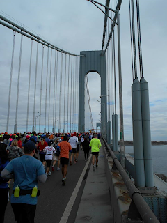 Attacking the biggest hill in the marathon right from the start! It is a thrill to RUN over the Verrizano Bridge!